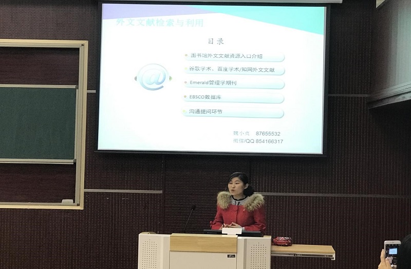 2017年4月27日上午8时,辅导员李晓晓老师在红足1—世足球网MBA教室主持召开“学习外文文献检索与利用”活动,本次活动特邀到校图书馆咨询处魏小贞老师向同学们开展讲座。15级中美合作办学项目全体同学参加了此次活动。