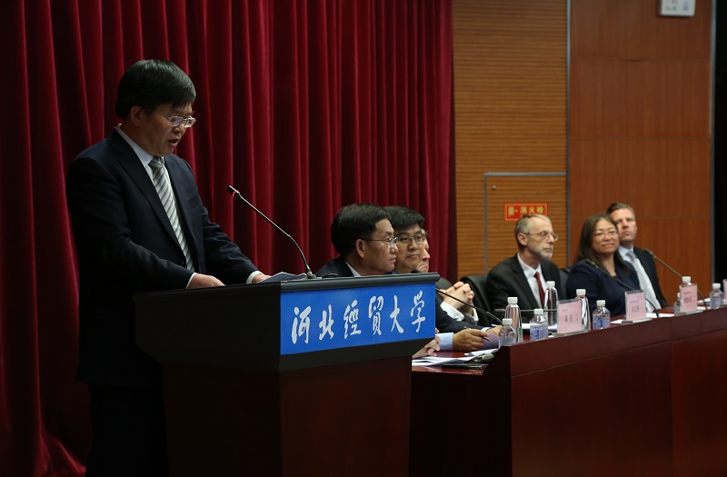 纪良纲校长对戈尔德校长、吉安得利斯副校长表示欢迎,指出合作办学项目是我校国际化人才培养的一大靓点,首批赴美15名学生因为在美期间学习优异获得了美方的“院长优秀”奖,8名同学获得康考迪亚大学“杰出学生”奖表示祝贺,纪校长对合作办学项目的人才培养成果给予了高度评价。戈尔德校长(Daniel Gard)是美国知名心理抚慰专家,戈尔德教授对我校赴美同学取得优异成绩高度赞扬,诚邀更多同学赴美深造。吉安得利斯副校长(Thomas Jandris)是著名的创新管理和教育管理专家,从研究生教育和学术研究角度阐述了康考迪亚大学的发展愿景,期望两校更加深入的合作。