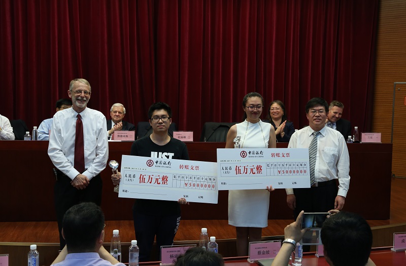 中美校长为出国奖学金获得者颁发奖金及奖杯