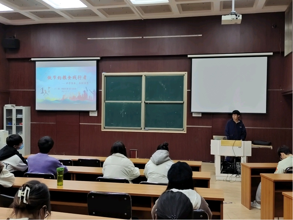 会议伊始,团支书康润嘉先带领全班同学了解了当下粮食浪费的现状。他点明当下浪费粮食的现象比比皆是,甚至我国城市餐饮业仅餐桌食物浪费量就有1700万至1800万吨,相当于3000万至5000万人一年的食物量。而这些食物如果给到非洲或者其他当前仍处于饥饿状态的国家,可以使许多孩子吃上饱饭,不再受到饥饿困扰。因此,我们应当对于粮食浪费现状重视起来,而作为新时代的大学生,应该提升自我素质,以节约为荣,以浪费为耻,在大学期间养成节约的良好习惯,这也是在为国家做力所能及的一件事情。最后,同学们共同参与了相关活动,表示明白了勤俭节约的重要性,鉴往知来,才能不忘前行。勤俭节约是中华民族传统美德,作为新时代的青年人我们应该知道节约粮食的重要性,珍惜每一粒粮食,是尊重劳动人民的表现,这也是爱国主义教育的一部分。