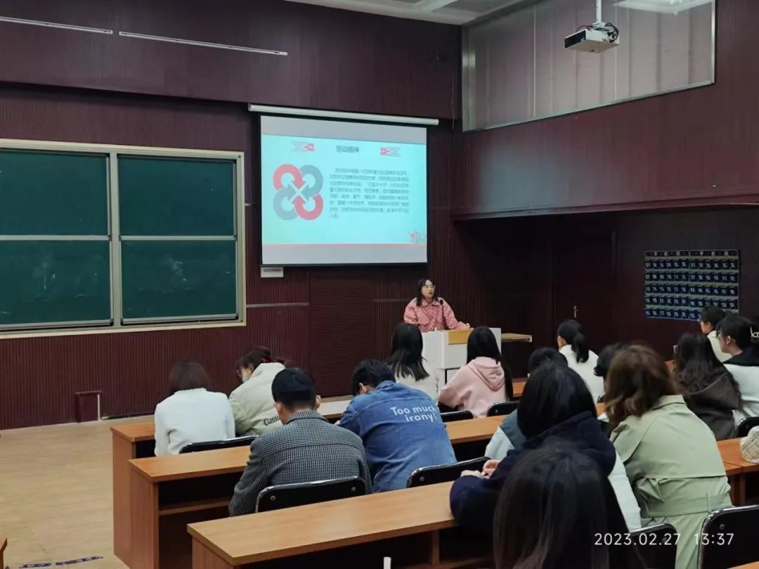 开始前,团支书简要跟同学们介绍活动背景、内容及流程。班会上,团支书向同学们讲述劳动者故事,倡导勤俭节约理念,弘扬劳动精神,带领同学们学习感悟劳模精神、工匠精神。最后,在团支书的带领下,同学们动手劳动,打扫卫生,认真打扫二教及学院,在实践中感受劳动的意义。同学们情绪高涨,积极参与了本次活动。