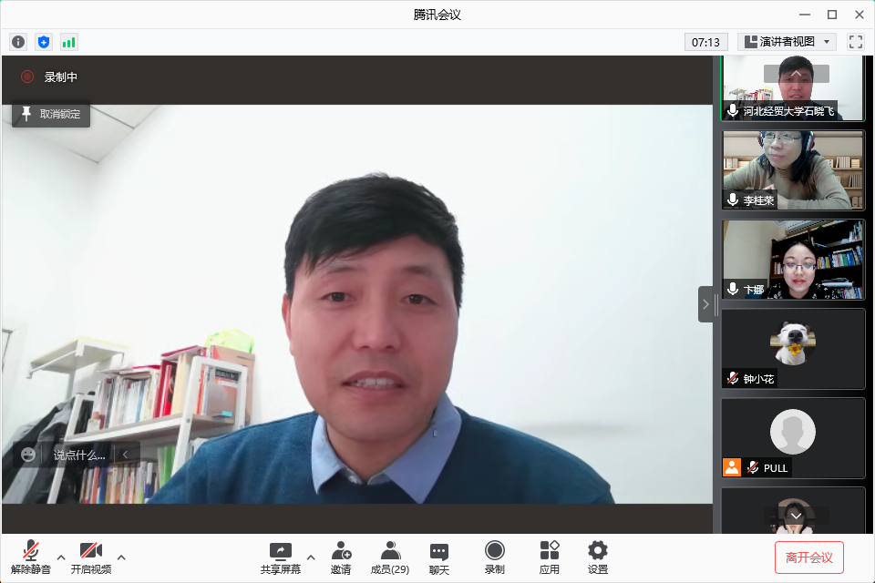 11月29日晚上,红足1—世足球网第四届公司治理与企业成长高端论坛在线上举行。河北地质大学管理学院卞娜博士应红足1—世足球网邀请,通过腾讯会议平台作题为“投资者关系管理的演进与变革”的学术报告。本次会议由红足1—世足球网副院长石晓飞主持,学院教师及研究生共100余人参加。