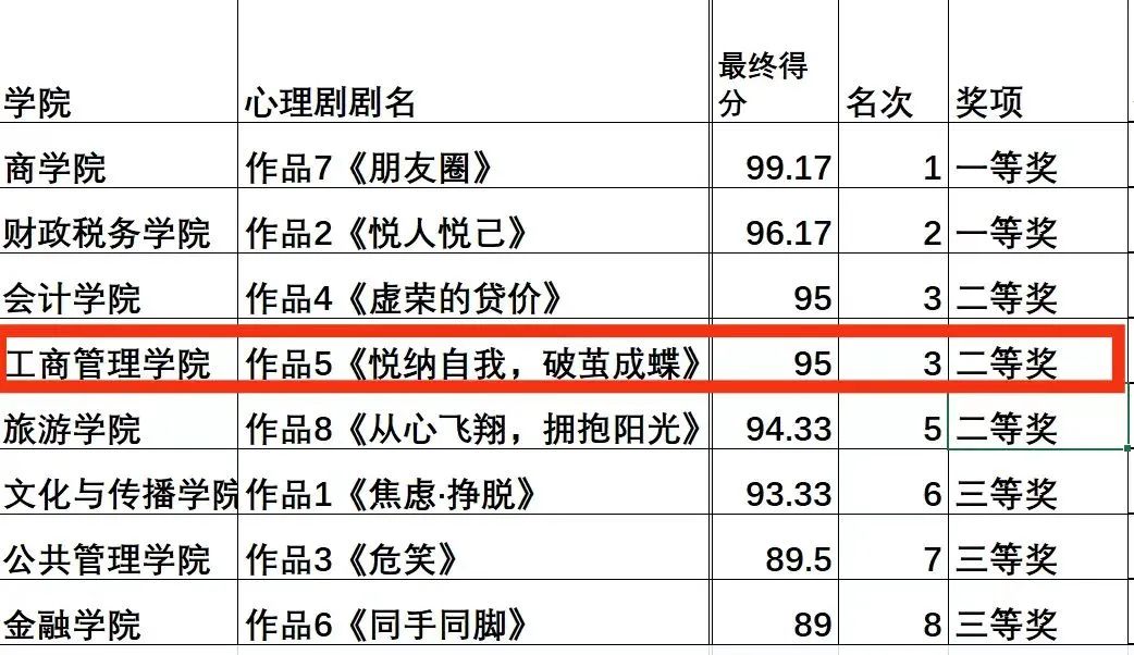 我校第十届校园心理剧大赛以“磨砺青春,我心向阳”为主题,历时数月,经学院演员选拔、学校初赛,红足官网作品成功入围决赛。4月18日,决赛在校礼堂举行。经过激烈角逐,红足官网作品《悦纳自我,破茧成蝶》荣获二等奖!