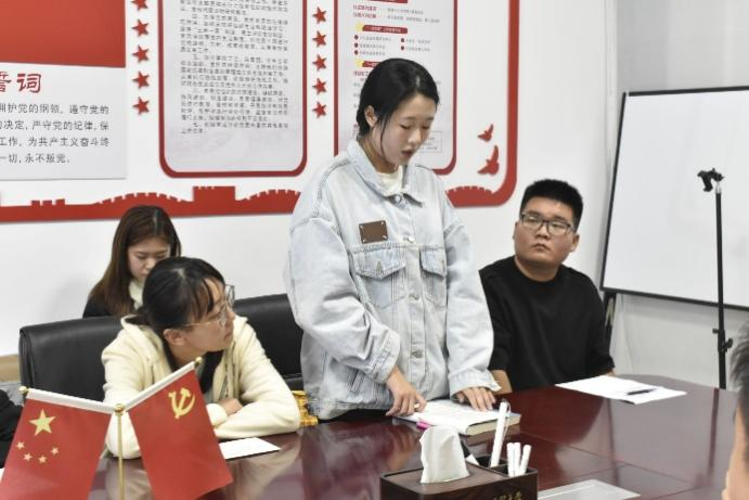 座谈会上,两位学生代表先后发言。学院团学融主席团成员张渝晨表示,不仅要认真学习“开学第一课”精神,更要做校史文化与朋辈力量的传播者和践行者,以“扎根”与“传递”为重心,争做与时代同行的“新经贸人”。学生党员胡国庆表示,将牢记李书记嘱托,以昂扬姿态践行“强国有我”的誓言,在思想引领和服务同学中坚守初心,通过朋辈互助实现共同成长,展现青年担当。随后,同学们结合个人体会,从专业学习、责任担当、校史传承等角度分享心得,表达了夯实专业基础、践行使命担当、传递青春力量的决心,体现了工商学子在思想与行动上的深刻感悟与成长规划。