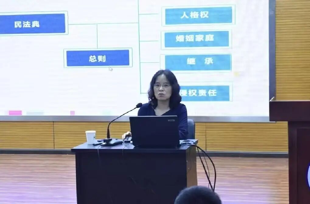 田韶华以“理解民法精神、运用民法思维”为核心,以“化繁为简”的逻辑拆解庞大法律体系,从三大维度对民法典展开讲解。她首先对《民法典》的体系框架与时代意义进行了清晰梳理,将宏大的法律条文转化为贴近生活的具体规则,引导学生真正读懂这部“社会生活的百科全书”;进而深刻剖析了法典背后所蕴含的“以人为本、尊重人性、平等精神、弱者保护”等八大核心关怀,并激励学生不仅要成为人文精神的深刻理解者,更要成为在日常生活中的积极践行者;最后,聚焦权利保障,通过对人格权、财产权、婚姻家庭权等关键权利的深入解析,结合现实案例,为学生们解答了日常工作与生活中可能面临的法律困惑,提醒同学们在工作、生活中要强化法律意识,“知法、守法、学法、用法”,善于用法律武器保护自己和企业的合法权益。