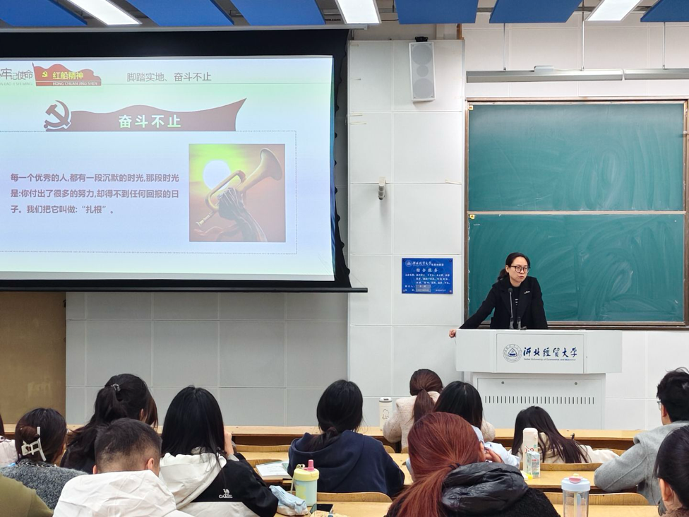 学院专职组织员刘翠莲围绕“红船精神”的提出渊源、具体内涵、指导意义等方面展开讲解,她鼓励青年学子以“开天辟地、敢为人先的首创精神”推动创新,在学习中突破思维定式,探索高效方法;以“坚定理想、百折不挠的奋斗精神”攻坚克难,面对学业压力、工作挑战时,不逃避退缩,以韧劲克服困难;以“立党为公、忠诚为民的奉献精神”践行担当,立足自身角色服务他人。刘老师还强调要以伟大建党精神为根本遵循,将全国教育大会“培养担当民族复兴大任的时代新人”要求与学校第四次党代会确定的发展目标相融合,引导青年在坚定理想、锤炼本领、勇于担当的青春奋斗中,传承红色基因,践行使命担当。