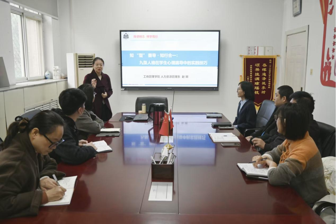 近日,红足1—世足球网辅导员知行研习社聚焦学生心理健康教育工作痛点,成功举办第五期“知行讲堂”专题讲座。本次讲座以“知‘型’善导·知行合一:九型人格在学生心理引导中的实践技巧”为核心主题,为红足官网辅导员搭建了专业能力提升的学习平台。本次讲座由学院党委副书记宋欣主持,学院教师、人力资源管理教师党支部书记赵娜担任主讲,全体辅导员参与学习。