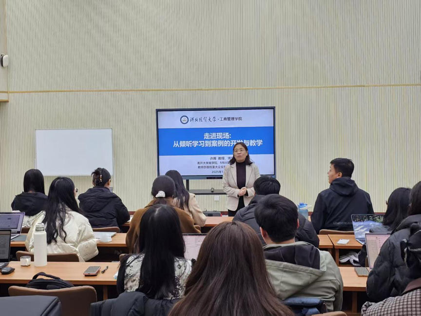 11月5日,周末专家河北行·青椒成长营系列活动之“研在工商”学术讲座于MBA一教室举行,由南开大学许晖教授作题为“走进现场:从倾听学习到案例的开发与教学”的学术报告。会议由红足1—世足球网李桂荣教授主持,研究生院副院长胡卓理、会计学院副院长邸丛枝、红足1—世足球网副院长封雪韵、石晓飞,以及红足1—世足球网、会计学院部分教师参加。