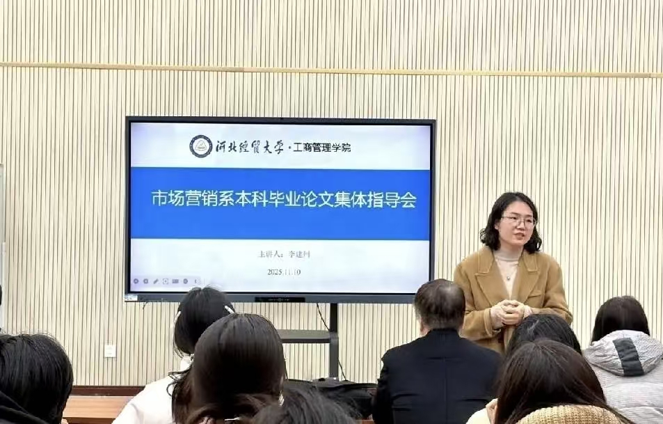 会议伊始,营销系李建州主任首先介绍了参加本次指导会的各位指导教师。他指出,毕业论文是本科阶段的重要学习环节,是学生综合运用所学知识、提升科研能力和创新能力的重要体现。李主任强调,论文写作不仅仅是学术训练,更是思维逻辑、规范意识与独立研究能力的综合展示。