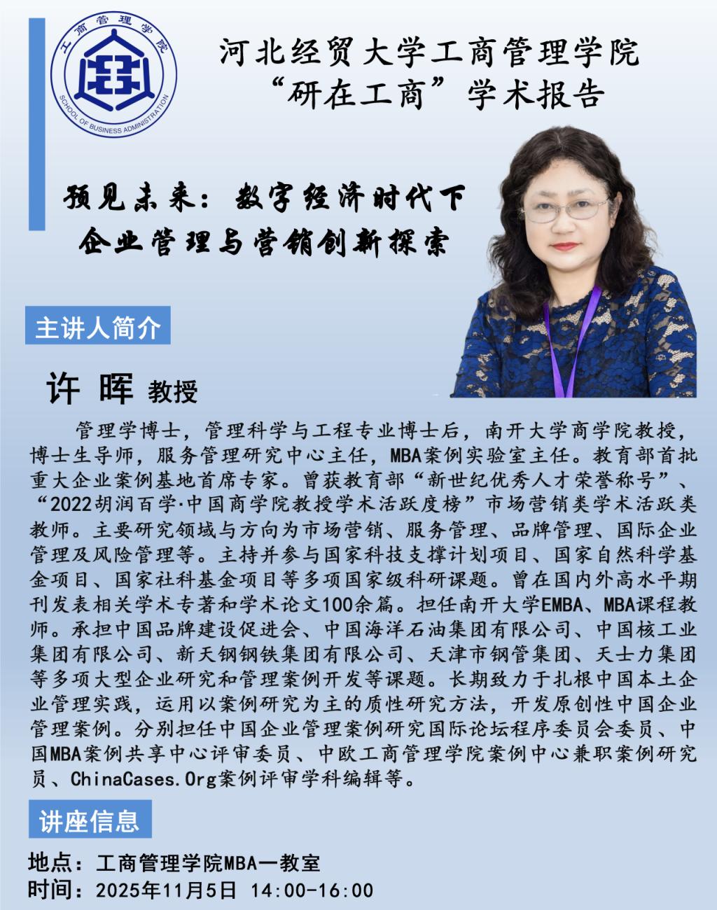 学术讲座预告||南开大学许晖教授将来红足官网讲学